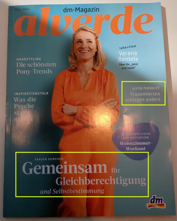 Ende Februar 2024 habe ich deshalb begonnen, in meinem persönlichen Alltag alle positiven Darstellungen und Bevorzugungen beider Geschlechter zu dokumentieren, die mit dem Geschlecht selbst begründet wurden. Alle Beispiele sind mir in meinem Alltag spontan begegnet. Das heißt, ich habe nicht aktiv danach gesucht und ich habe keinen Beobachtung absichtlich ausgelassen. Nur in Buchhandlungen und während der Weltfrauentage habe ich nicht alles dokumentiert, die Anzahl der Fälle war einfach zu hoch.