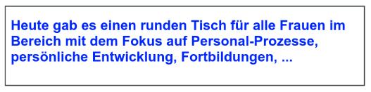 Eine Bereichsleiterin informiert im Intranet über einen runden Tisch, der für alle Frauen im Bereich stattgefunden hat. Privat finanziert. | |