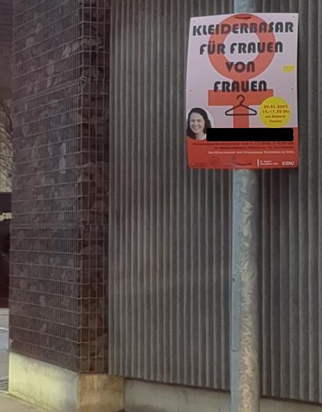Kleiderbasar für Frauen. Staatlich gefördert durch Parteienfinanzierung. | |