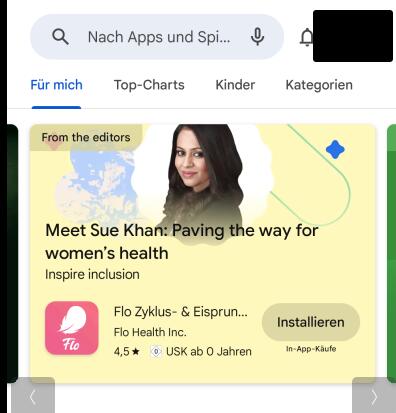 Der Google App-Store bewirbt ein Treffen mit einer Frau, die den Weg für die Gesundheit der Frauen bereitet hat. Privat finanziert. | |