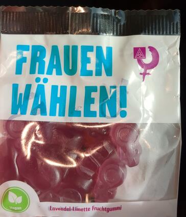 Gummibärchen der IG Metall, die dazu aufrufen, Frauen zu wählen. Privat finanziert. | |