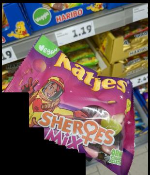 Katjes Gummibärchen mit Wortspiel aus "She" und "Hero" Privat finanziert. | |