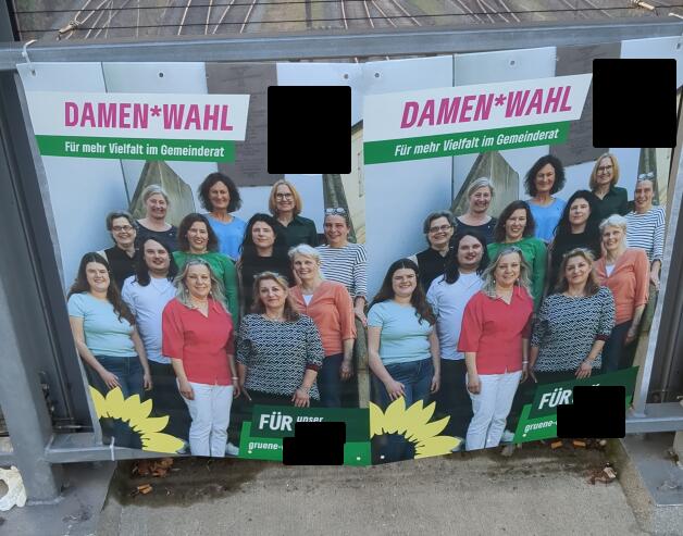 Auch die Grünen rufen zum Wählen von Frauen auf. Staatlich gefördert durch Parteienfinanzierung. | |