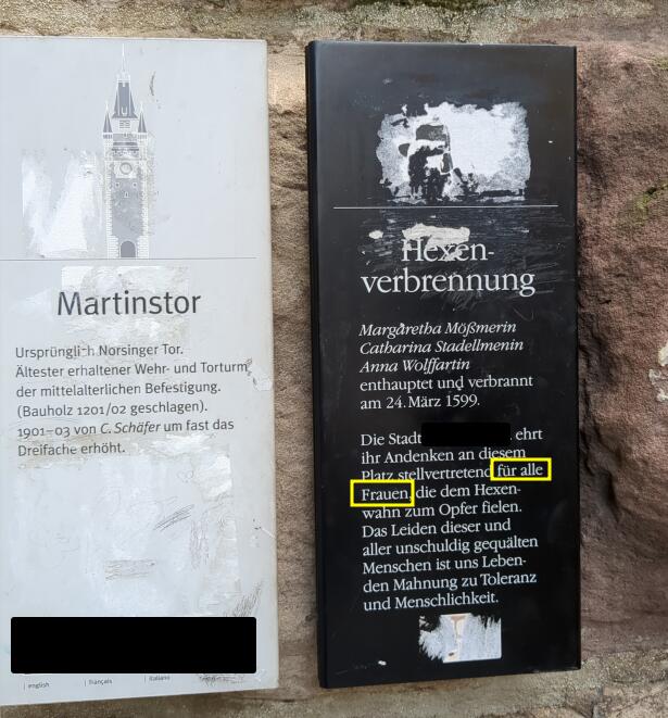 Gedenktafel für Frauen, die Opfer des Hexenwahns wurden. Staatlich finanziert. | |