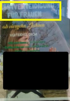 Werbung für einen Selbstverteidigungskurs für Frauen in einem Schaufenster. Privat finanziert. | |