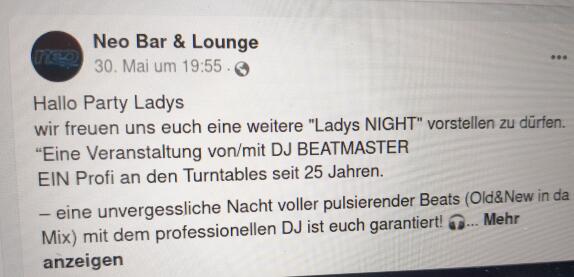 Ein Club läd zu einem Abend nur für Frauen ein. Privat finanziert. | |