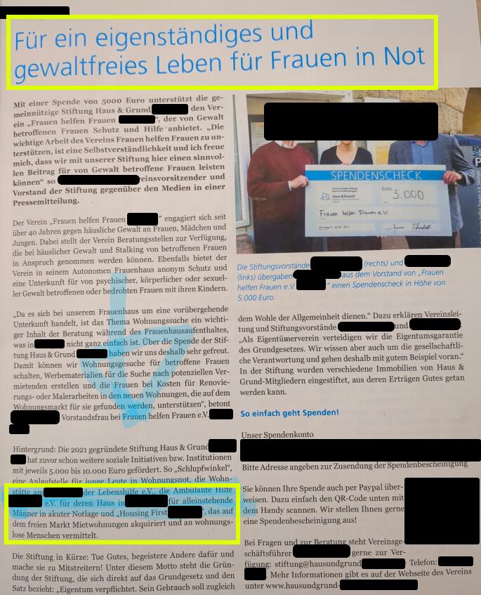 Der Verein "Frauen helfen Frauen" bekommt eine Spende von einer Stiftung. Privat finanziert. |