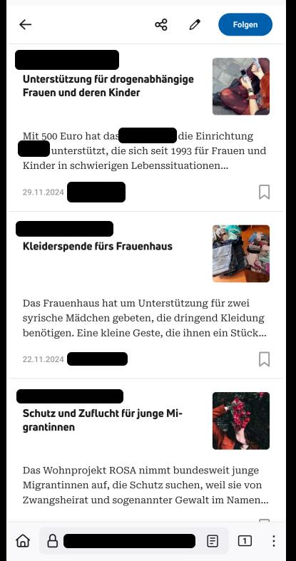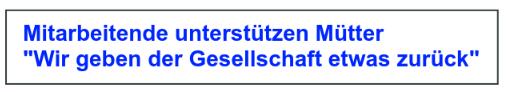 Artikel im Intranet einer Firma, über Mitarbeiter, die Frauen mit Kindern unterstützen. Privat finanziert. | |