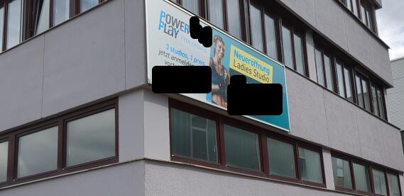 Ein Fitnessstudio wirbt mit einem Bereich für Frauen. Privat finanziert. | |