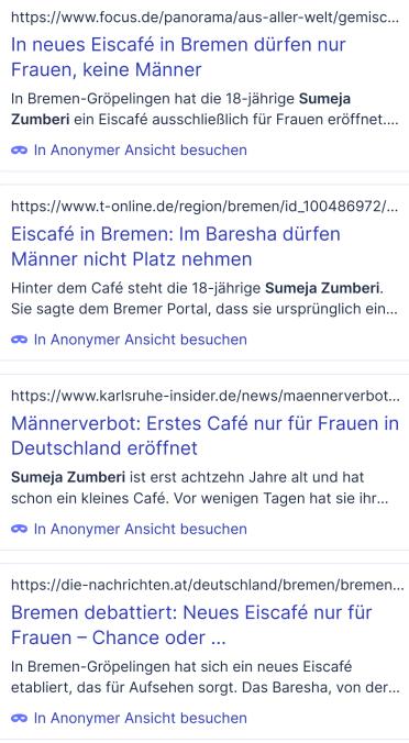 Die Presse bereichtet über ein Cafe für Frauen. Privat finanziert. | |