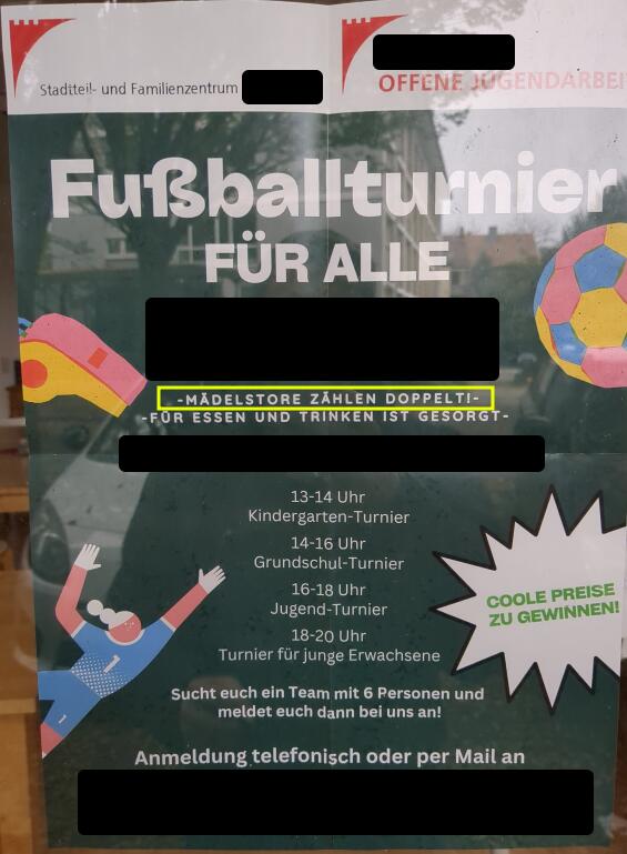 Tore von Mädchen zählen doppelt beim Fußballtournier. Staatlich finanziert. | |