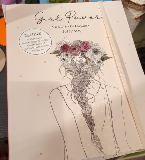Ein Schülerkalender mit der Aufschrift "Girl Power". Privat finanziert. | |