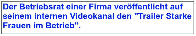 Der Betriebsrat einer Firma hat ein Video über Starke Frauen produziert. Privat finanziert. | |