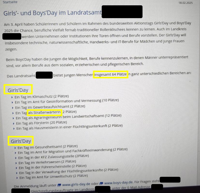 Zum Girls'Day werden 50 Plätze für junge Frauen angeboten. Staatlich finanziert. |