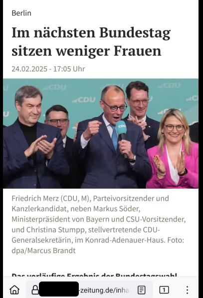 Zahlreiche Medien melden, dass im neuen Bundestag weniger Frauen sitzen. Privat finanziert. | |