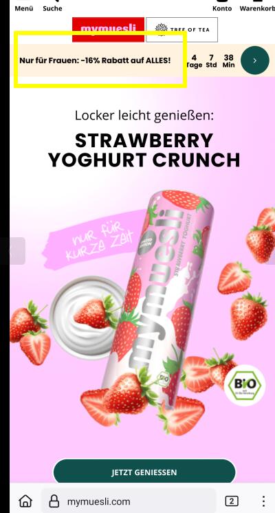 Eine Firma gewährt 16% Rabatt nur für Frauen. Privat finanziert. | |