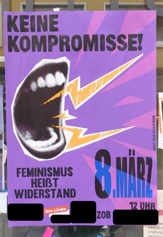 Veranstaltung für den Feminismus, die zu Widerstand aufruft und "keine Kompromisse" fordert. Staatlich gefördert durch Parteienfinanzierung. | |