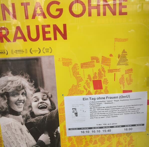 Im Kino läuft ein Film, der einen Tag feiert, an dem isländische Frauen gestreikt haben. Privat finanziert. | |