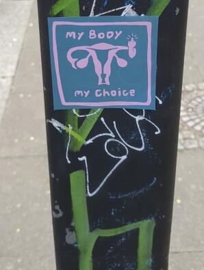 Ein Aufkleber auf einer Straßenlaterne, der für Frauen das alleinge Recht zur Entscheidung über eine Abtreibung fordert. Privat finanziert. | |