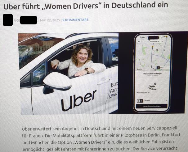 Ein neuer Taxi Dienst, der nur von Frauen genutzt, und nur von Frauen angeboten werden kann. Privat finanziert. | |