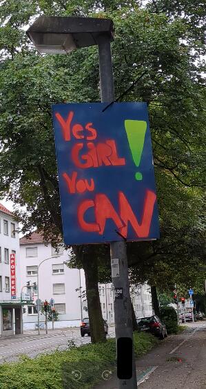 Ermunterung für Frauen an einer Straßenlaterne. Privat finanziert. | |