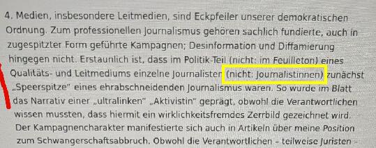 Öffentliche Erklärung einer gescheiterten Kandidation, die betont, dass Frauen nicht an der rufschädigenden Berichterstattung über ihre erfolglose Bewerbung als Verfassungsrichter schuld waren. Privat finanziert. | |