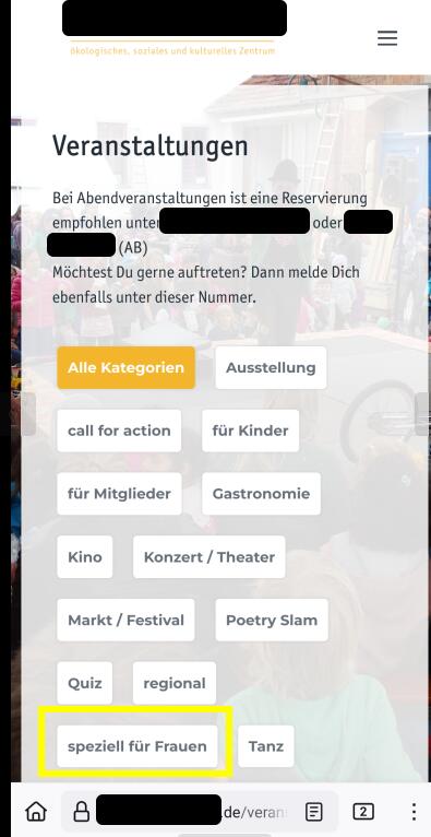 Ein Kulturverein, der Veranstaltungen nur für Frauen anbietet. Staatlich gefördert. | |