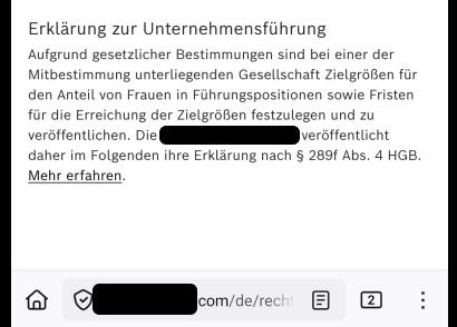 Eine Firma informiert über ihre gesetzliche Pflicht, Führungspositionen nur an Frauen zu vergeben. Staatlich finanziert. | |